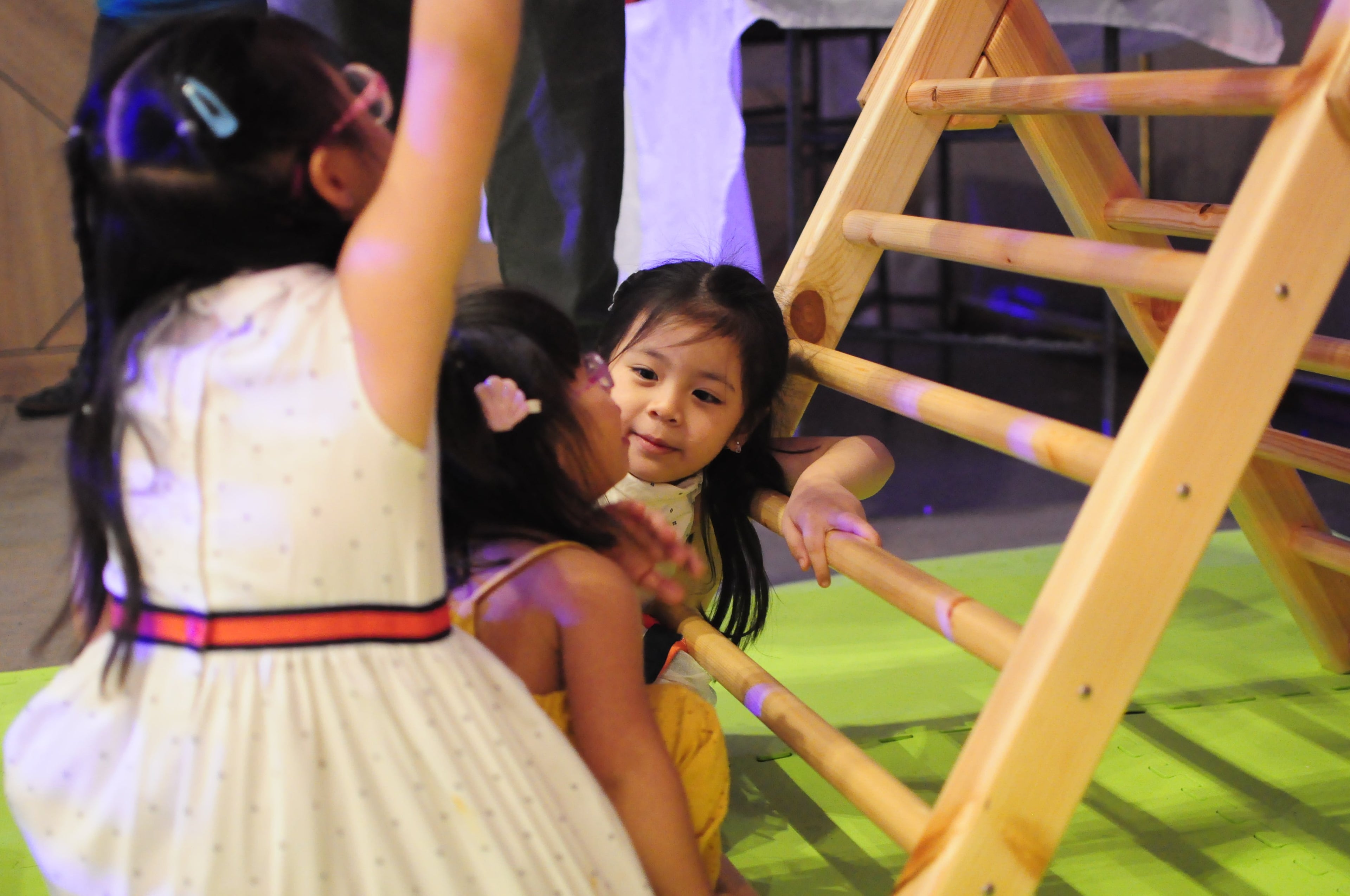 No food, drinks, bubble gum, shoes, crayon/pen/ink marks or other stains/spills on the play equipment please.