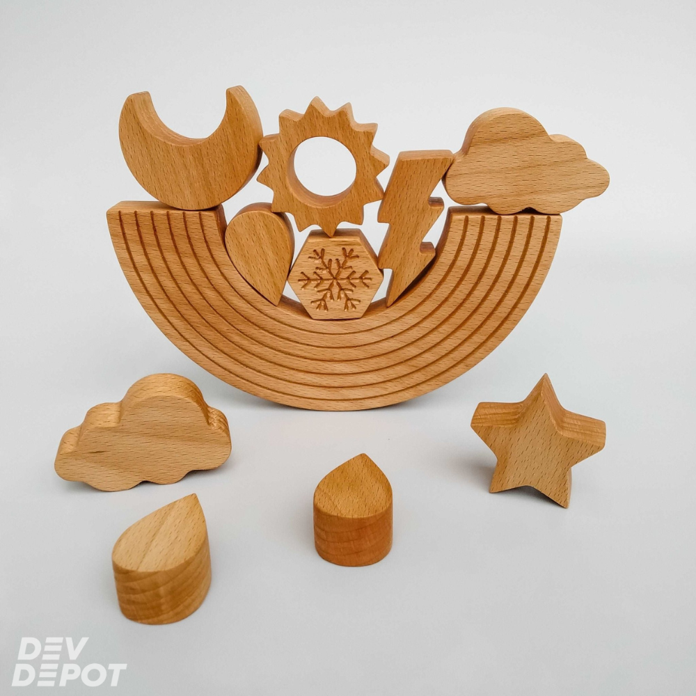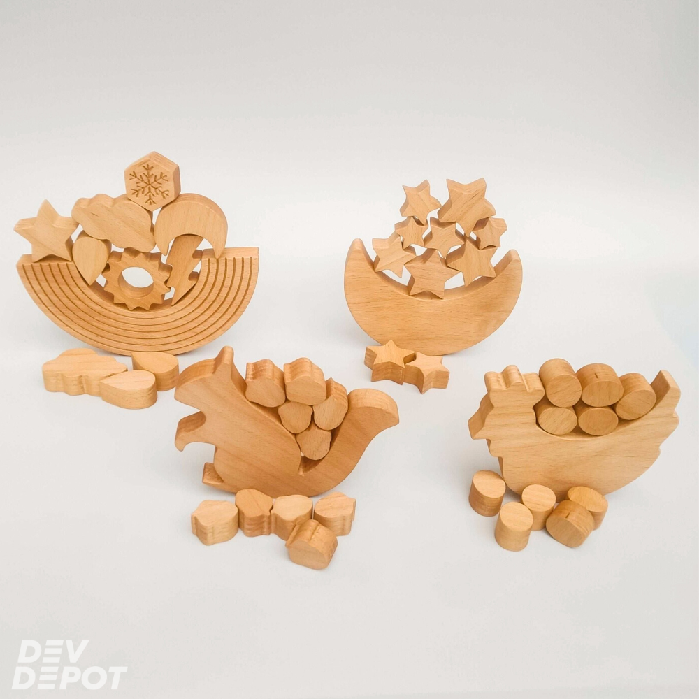 These exciting balancing toys will keep your little ones busy while enhancing their fine motor skills! Made of teething-safe hardwood with blunted edges for a splinter-free play experience. The hand-rubbed finish provides adequate grip for stacking.