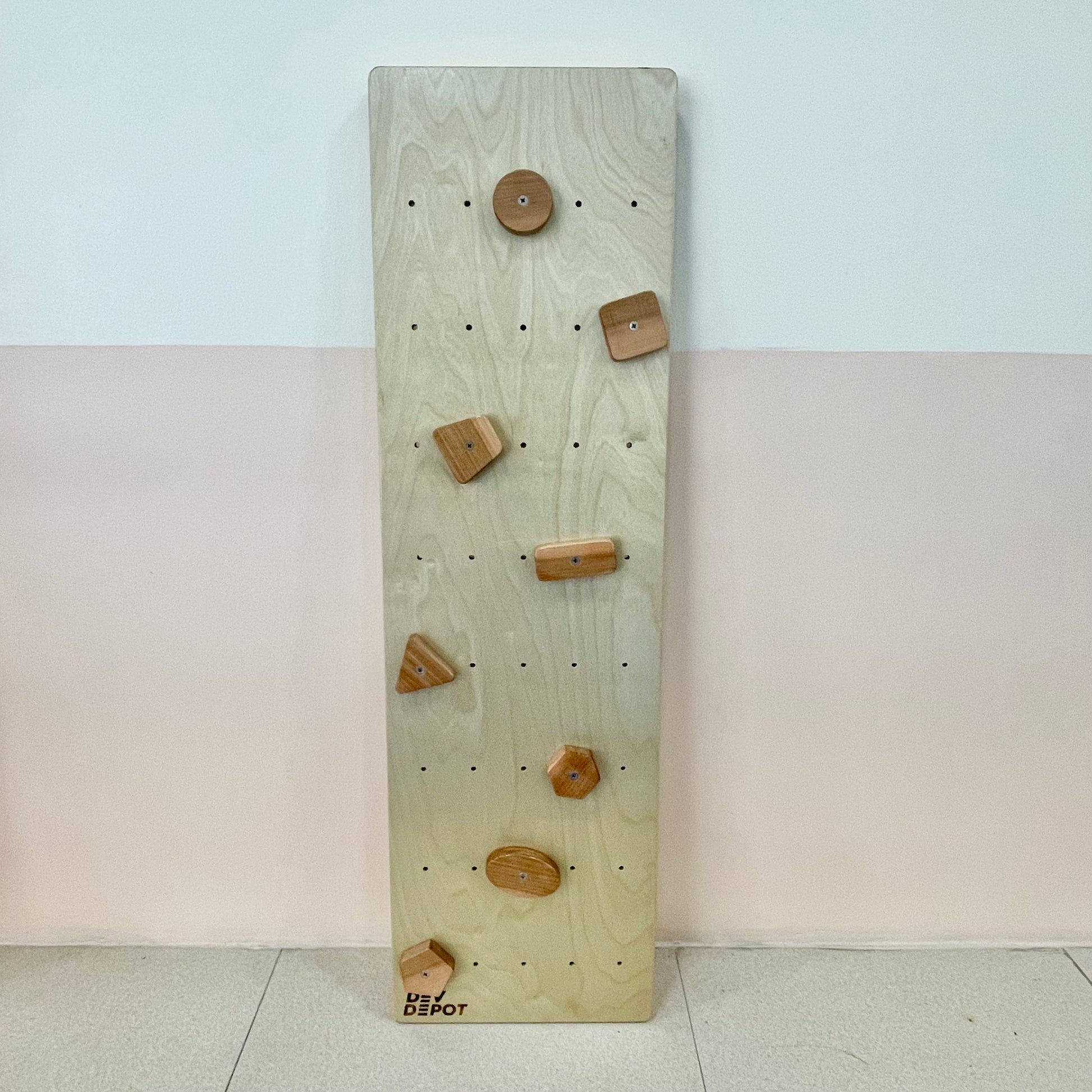 Our version of the rock climbing wall, but with wooden shapes that can be arranged depending on the activity.