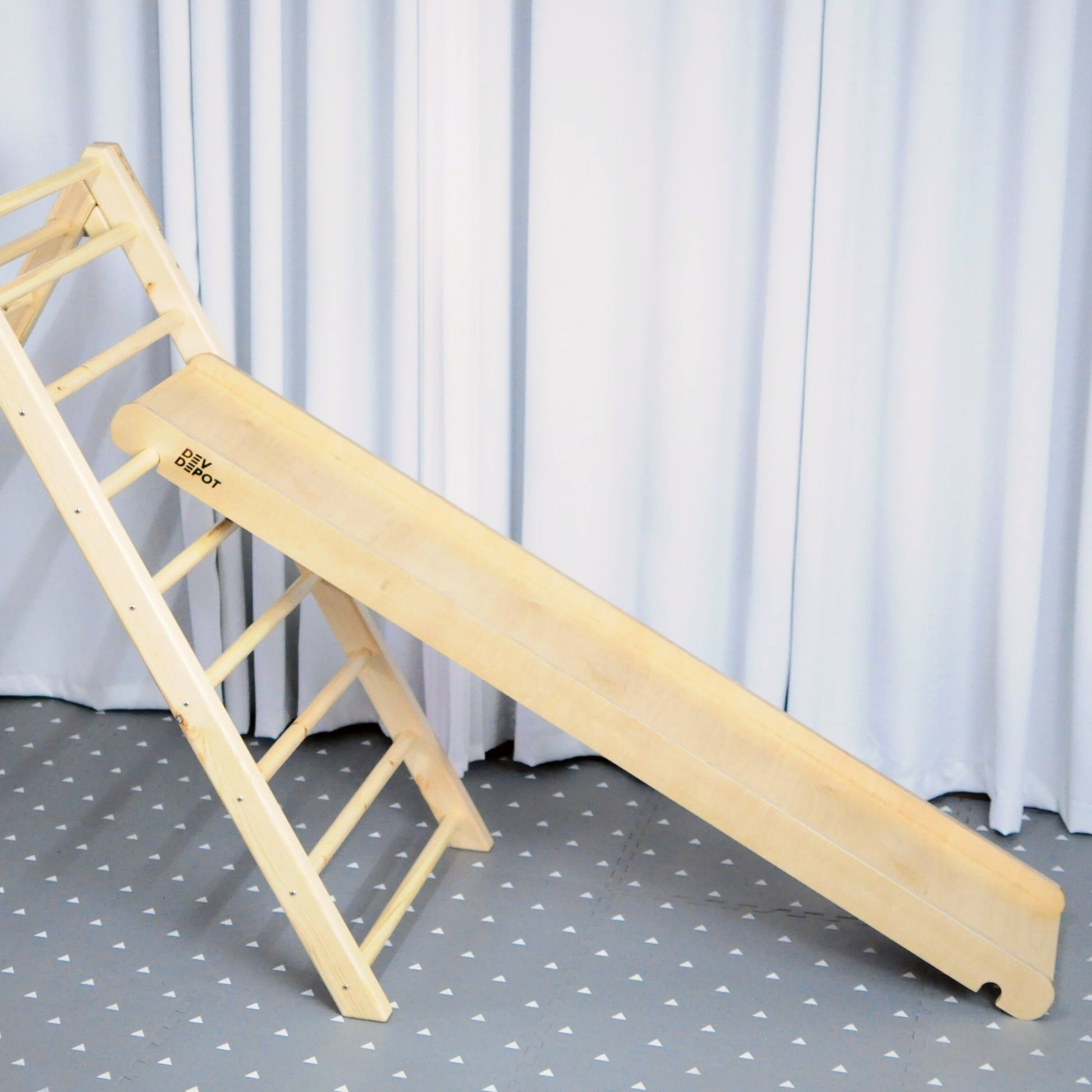 Our take on the traditional playground slide with side rails. A crowd favorite - especially for older climbers with advanced motor skills!