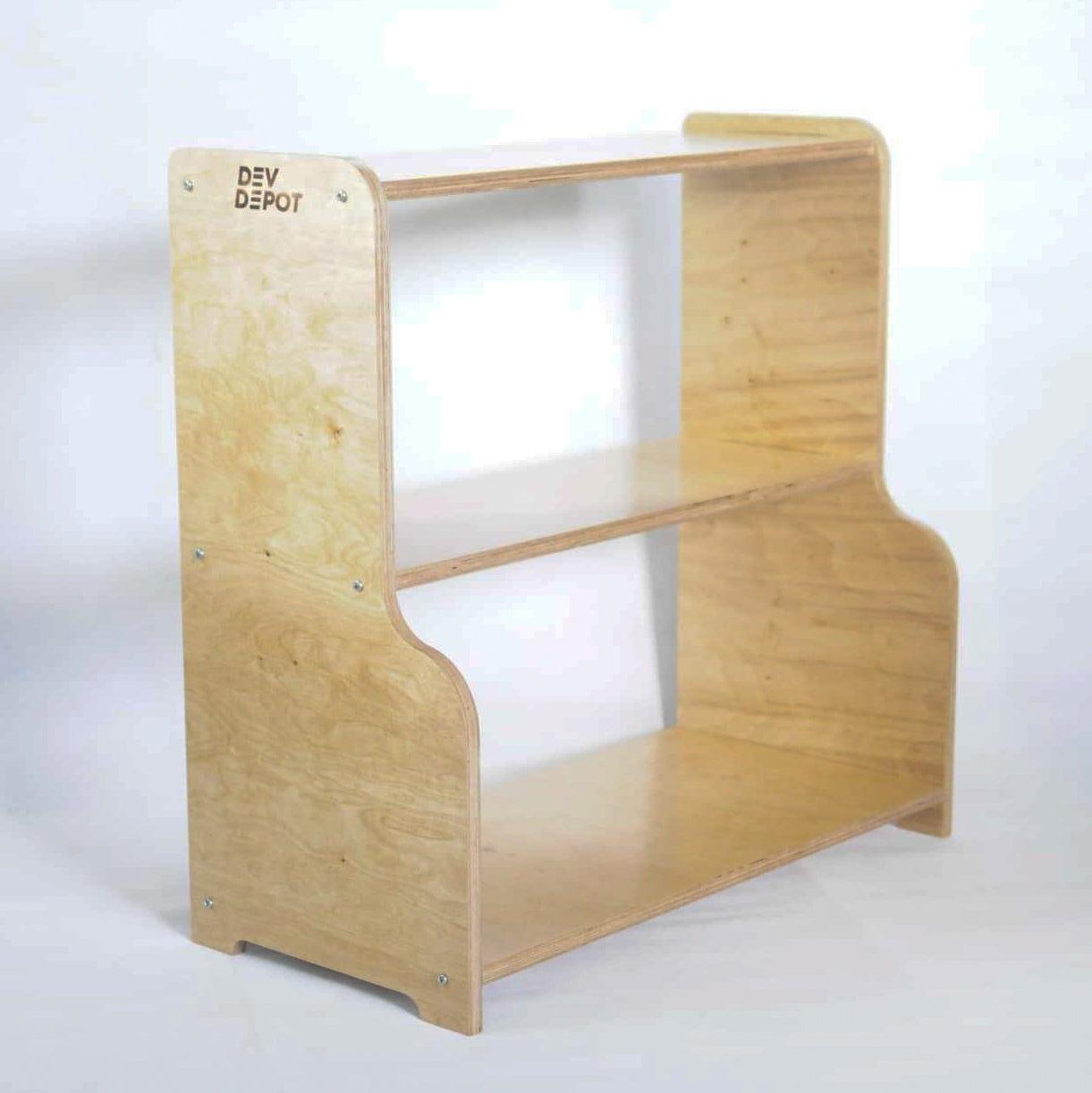 Our L-shaped Linden shelf enables busy parents to organize toys and books, ready to be explored by curious children.