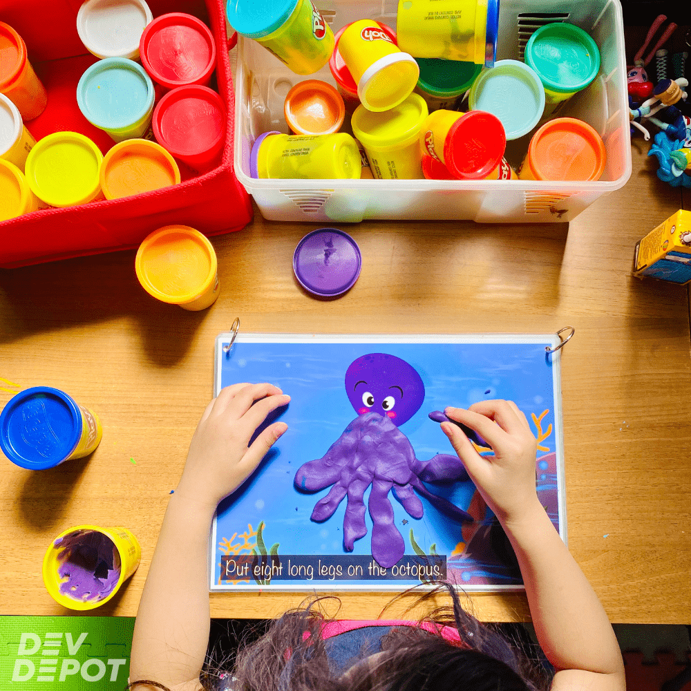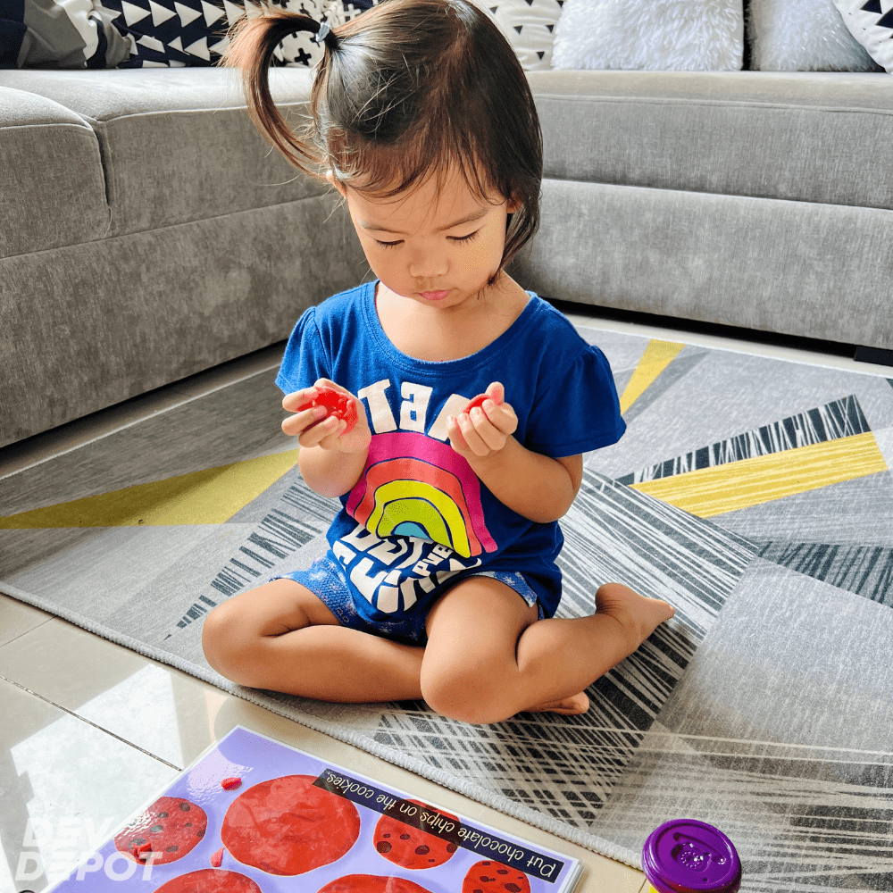 This playdough mat set contains 14 full-color illustrations which provide prompts for your little ones to play with their favorite dough. Children get to learn their colors, shapes, and numbers, and widen their vocabulary - all while enhancing their fine motor skills! The vibrant colors add to the overall appeal and will help keep young minds engaged for hours.